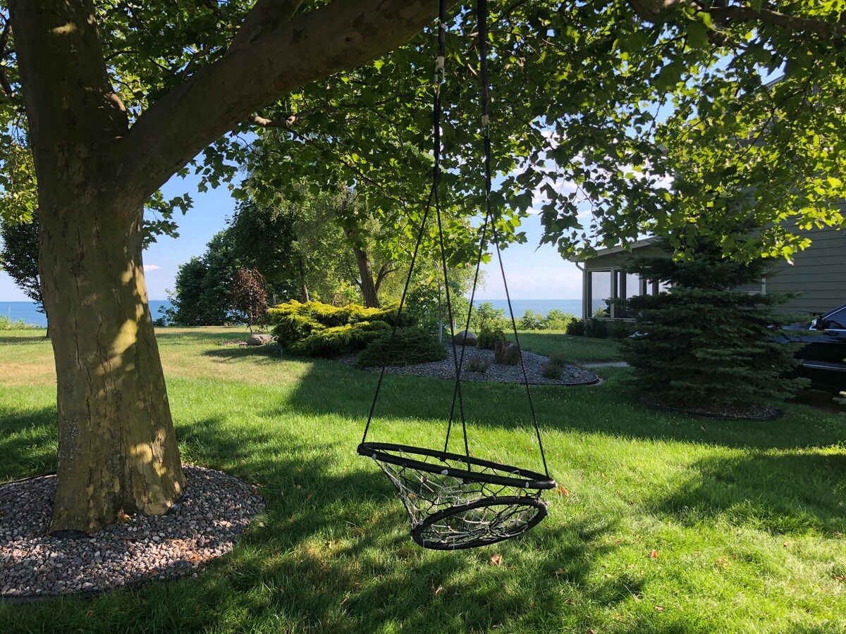 ¡NUEVA sauna y ducha al aire libre! Encantadora y rústica casa de campo con muchas actualizaciones modernas. Cocina y baño actualizados, con toques decorativos que se agregan continuamente. Lote de esquina privado con gran terraza y vistas al lago Erie. Acceso al lago a una playa tranquila y rocosa justo enfrente de la cabaña; otras playas ubicadas cerca. Fogata al aire libre para los huéspedes. Lugar ideal para observadores de aves, familias, parejas, amantes de la naturaleza y conocedores del vino. ¡Acceso gratuito al Parque Nacional Point Pelee para los huéspedes, durante toda la estancia!
