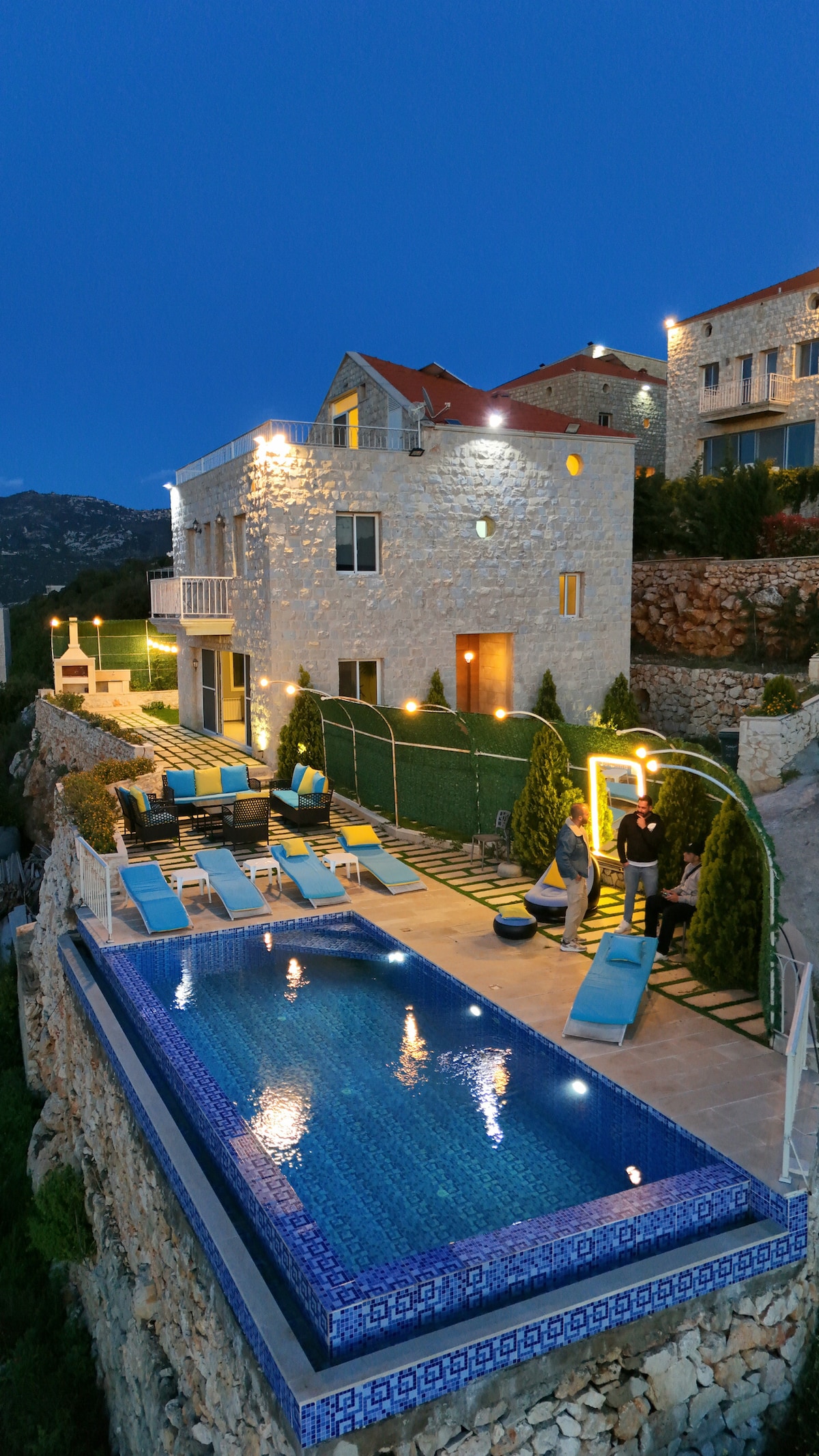 Villa de piedra arenisca frente al mar con piscina privada cerca de la playa de Taht ElRih, con techo de madera auténtica y vistas increíbles al atardecer, su expansión moderna preserva el aspecto tradicional con modernidad y serenidad. Se siente como un hogar lejos de casa, en una zona histórica con antiguas iglesias y sitios arqueológicos a pocos pasos. La ciudad tiene antiguos monasterios y lugares que visitar. Los restos de una fortaleza fenicia y cruzada se encuentran frente a ella, la gente puede nadar y tener mariscos locales en la playa cercana y los restaurantes de la ciudad.