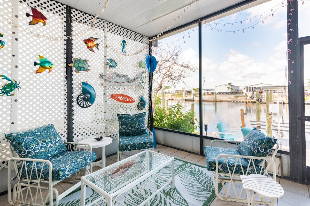 Descubre el encanto de Pine Island en nuestra casa recién renovada de 1400 pies cuadrados. Ubicado a lo largo de un tranquilo canal, donde puedes disfrutar de la presencia de manatíes, delfines, pelícanos e incluso águilas calvas desde la comodidad de tu propio muelle privado. @treasuretrove3070