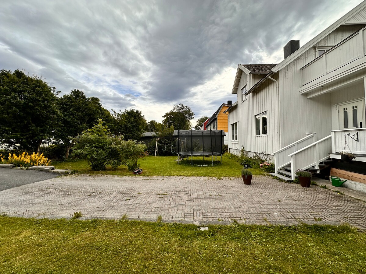 ¡Aquí puedes bajar los hombros! Casa Nordland restaurada de 1740/1890, que rezuma encanto antiguo. Tienes la mitad de la casa con tu propia entrada, sala de estar, cocina bien equipada, baño y 3 dormitorios. Hermoso jardín antiguo y grandes áreas de césped para jugar y divertirse. ¿O tal vez quieras pedir prestado un libro, relajarte en la hamaca o sentarte en la playa y disfrutar del sol de medianoche y la vida en las plumas?