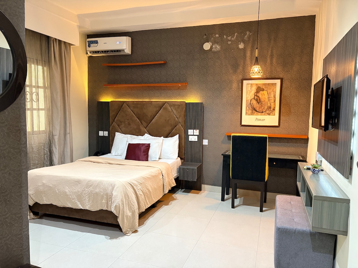Un nuevo y elegante apartamento tipo estudio ubicado en el corazón de LEKKI PH 1. Ofrece luz y WiFi las 24 horas, los 7 días de la semana, NETFLIX (con tu acceso) DSTV y limpieza gratuita cada 4 días. Es muy sereno y seguro y a unos 5 minutos a pie del cine Imax, la universidad Dowen, el hospital Evercare, los bancos, los restaurantes, los clubes, las tiendas, etc. Está a 4 minutos a pie del restaurante Village las 24 horas, los 7 días de la semana. A menos de 5 minutos en auto del puente de enlace Lekki-Ikoyi y de la puerta Lekki Ph 1. Por favor, echa un vistazo a todas nuestras demás opciones y LEE toda la otra información antes de reservar.