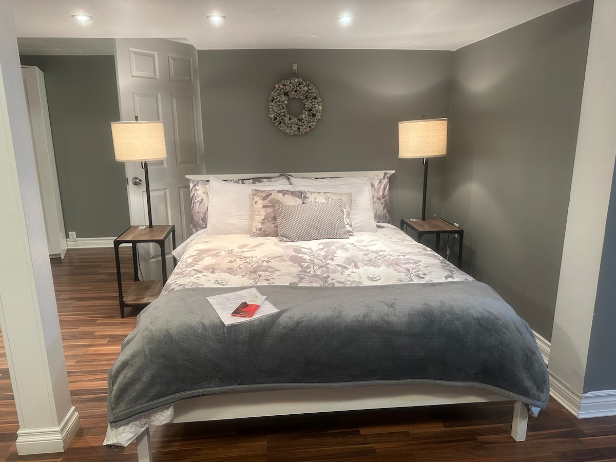 We’re licensed SuperHosts with 730+⭐️ glowing reviews, offering sparkling cleanliness, top comfort, and thoughtful extras. Private basement unit with self check-in, parking included, and fully equipped for your stay. Ideal for layovers, business trips, or extended stays. Plus: Fast Wi-Fi, cozy bedding, and all the essentials to make your stay seamless and stress-free. Trilingual Hosts: ON PARLE FRANÇAIS ¡HABLAMOS ESPAÑOL! Book now for a welcoming, hassle-free stay near YUL!