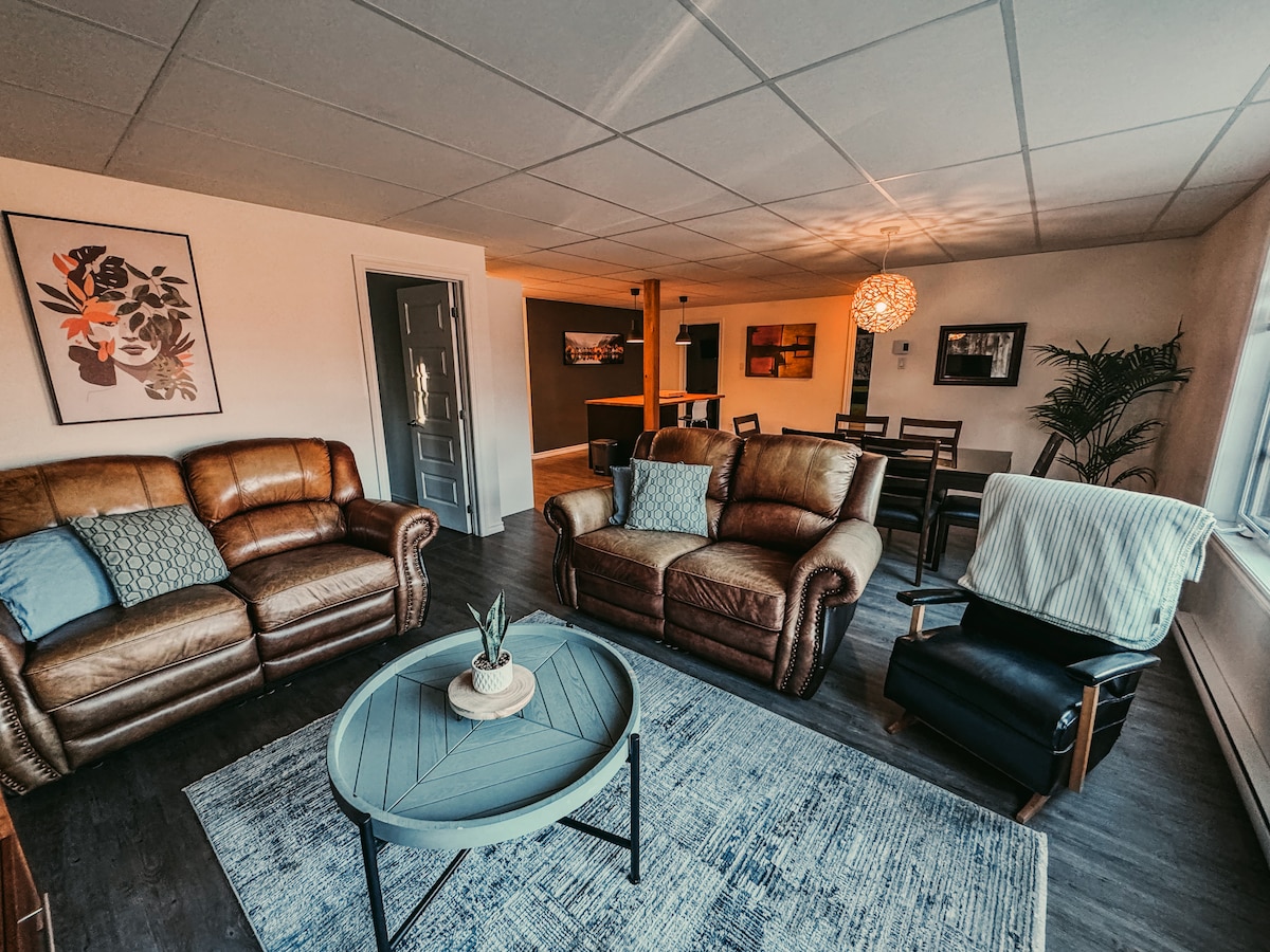 Alojamiento entero con equipamiento completo, posibilidad de 11 personas con 4 dormitorios y un sofá cama. Tarifa basada en ocupación doble, si desea habitaciones individuales se aplica un cargo adicional de 30 $ por habitación, por favor notifíquenos. En 1908, este apartamento era un hotel. En un radio de 1 km: tienda de comestibles, restaurante, gasolinera, Caisse Desjardins, campo de golf, tobogán de agua, carril bici, pista de hielo al aire libre, pista de tenis, campo de fútbol.