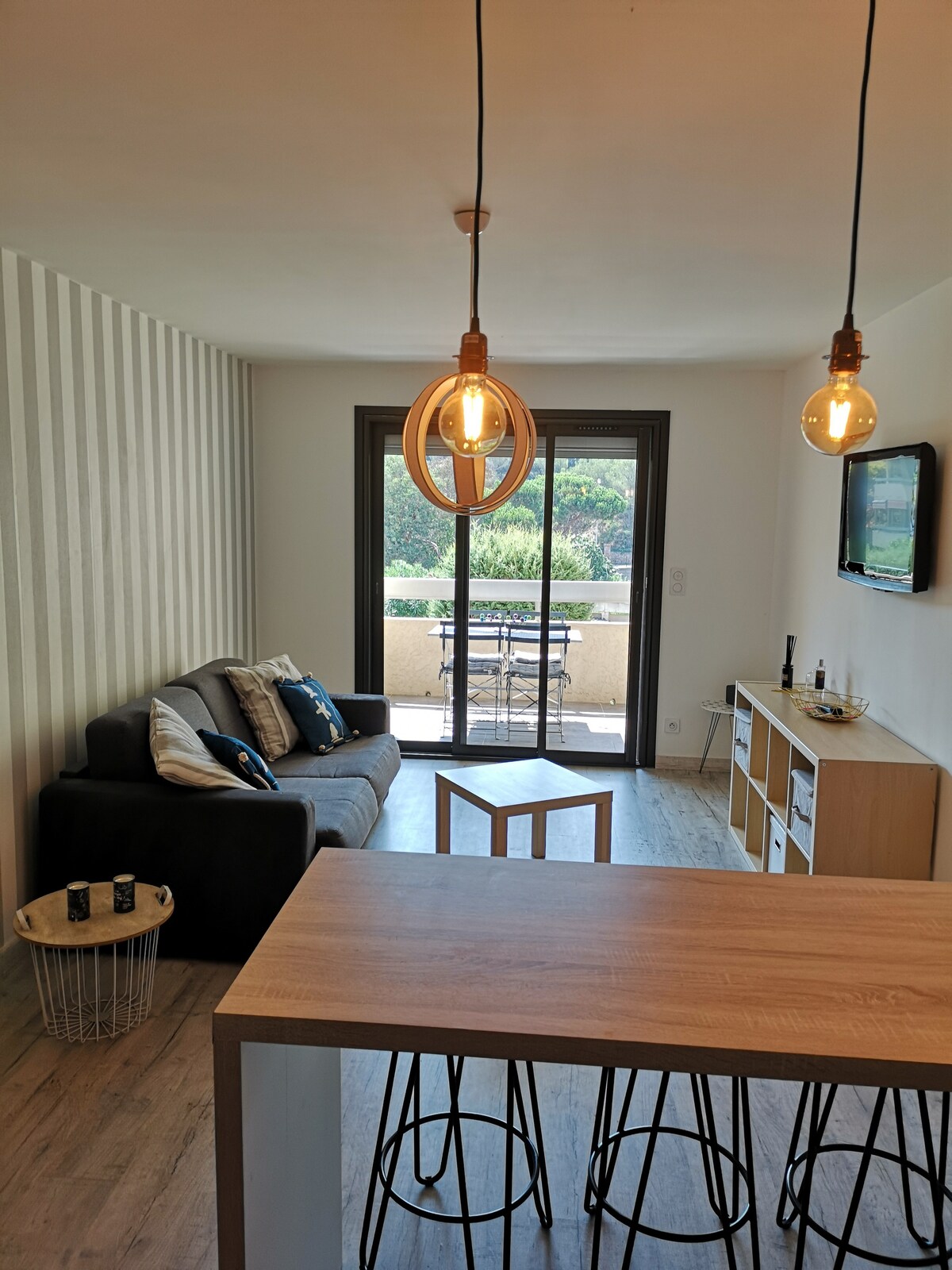 Relájate en esta hermosa villa zen con vistas a la Riviera Francesa en un jardín privado cercado a pocos pasos de la playa en una comunidad cerrada. Esta casa de 50 metros cuadrados está completamente renovada con un gran ventanal y vistas al mar y al jardín desde todas las habitaciones. Cuenta con un dormitorio separado con baño, una cocina totalmente equipada con comedor, una sala de estar con sofá seccional, un área de trabajo dedicada con aire acondicionado, acceso a Internet de alta velocidad con Starlink, 2 televisores inteligentes grandes, lavadora, estacionamiento privado y almacenamiento.