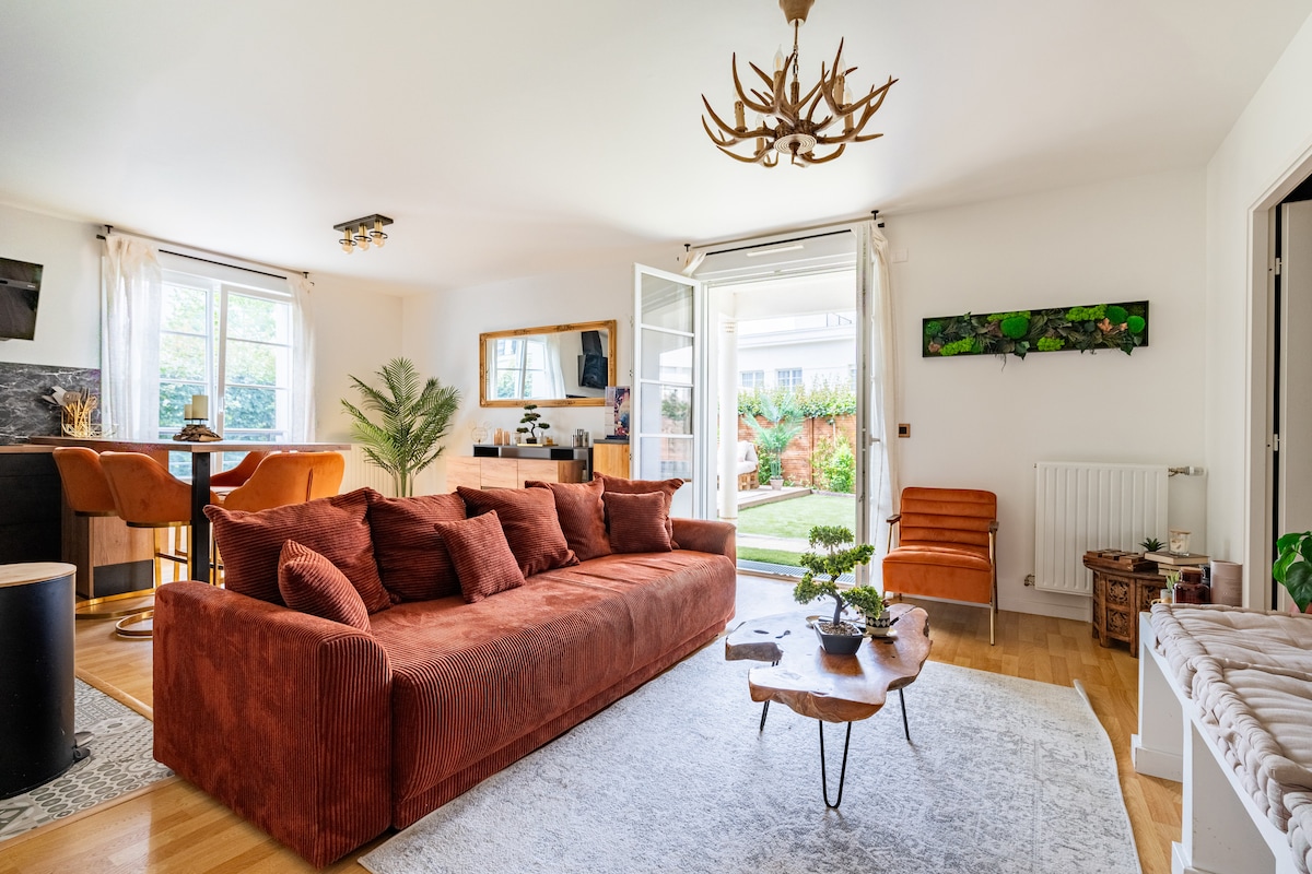 Impresionante casa privada llena de encanto de 60 m² decorada con buen gusto, terraza y gran jardín, situada en una zona tranquila en la zona residencial de Montgeron. ¿Le apetece un momento de evasión y descanso? Estás en el lugar indicado. 👨👨👧👧 Alojamiento para un máximo de 4 personas 📍 Estación de Montgeron a 15 minutos a pie 📍 París: 20 minutos en RER D 📍 Orly: 25 min 🚘 📍 Disneyland a 45 min 🚘 👉🏻 Insta: la_belle_escapee91