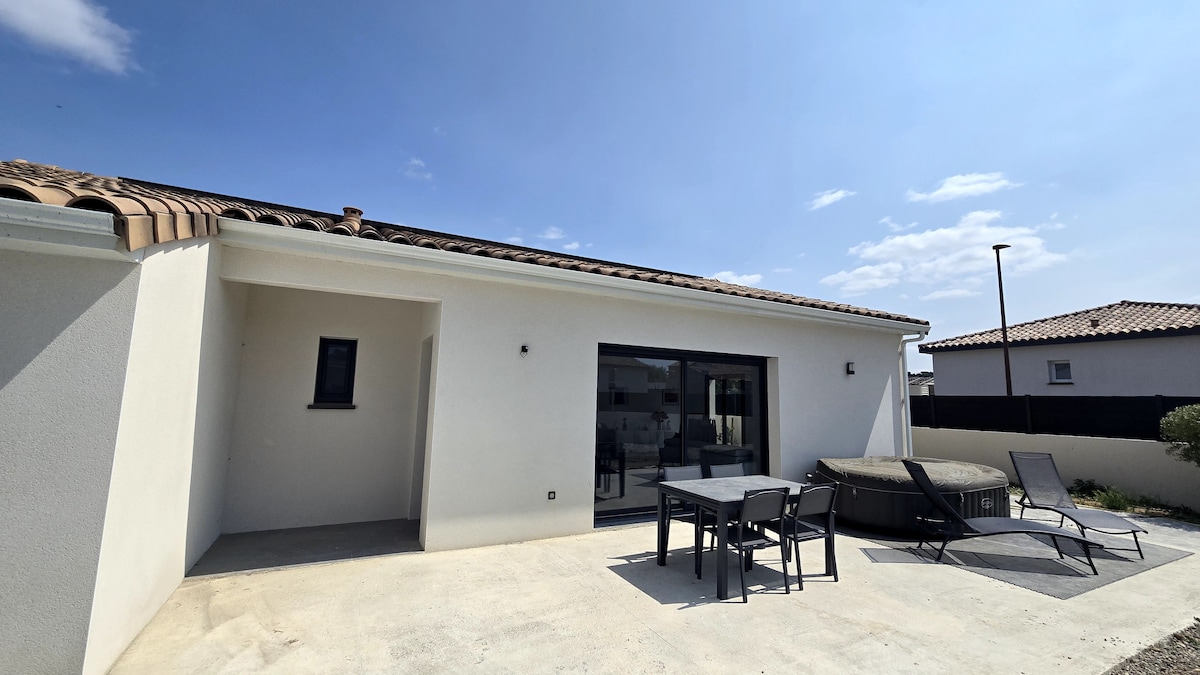 Hermosa villa nueva con aire acondicionado «Villa Laromi» en las alturas de Lespignan que ofrece un entorno tranquilo para unas vacaciones en familia o con amigos. La villa ofrece una hermosa sala de estar, 3 dormitorios, incluyendo 1 suite principal con inodoro y ducha. Un garaje está a su disposición para guardar su material, equipaje, cochecito. Un jardín privado y vallado, con tumbona, muebles de jardín y barbacoa hará las delicias de tus noches de verano Con una ubicación ideal a menos de 10 km de las playas y de Béziers Aparcamiento privado.