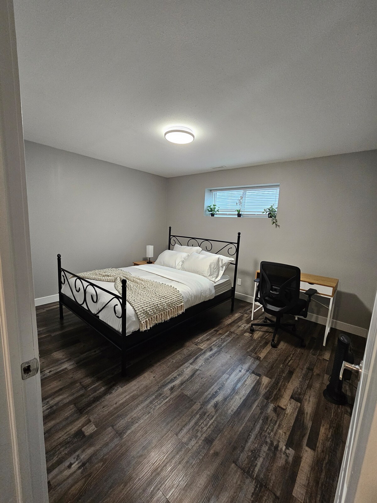 Disfruta de una estancia elegante y cómoda en esta suite de 1 dormitorio recién renovada en el sótano. Las características incluyen una entrada privada, cocina completa, acogedora sala de estar, TV inteligente, WiFi y un baño moderno. Situado en un barrio tranquilo cerca de tiendas y transporte locales. Perfecto para viajeros solitarios, parejas o estadías de negocios. No se permite fumar, vapear, beber alcohol ni drogas, por favor. Solo mascotas pequeñas.