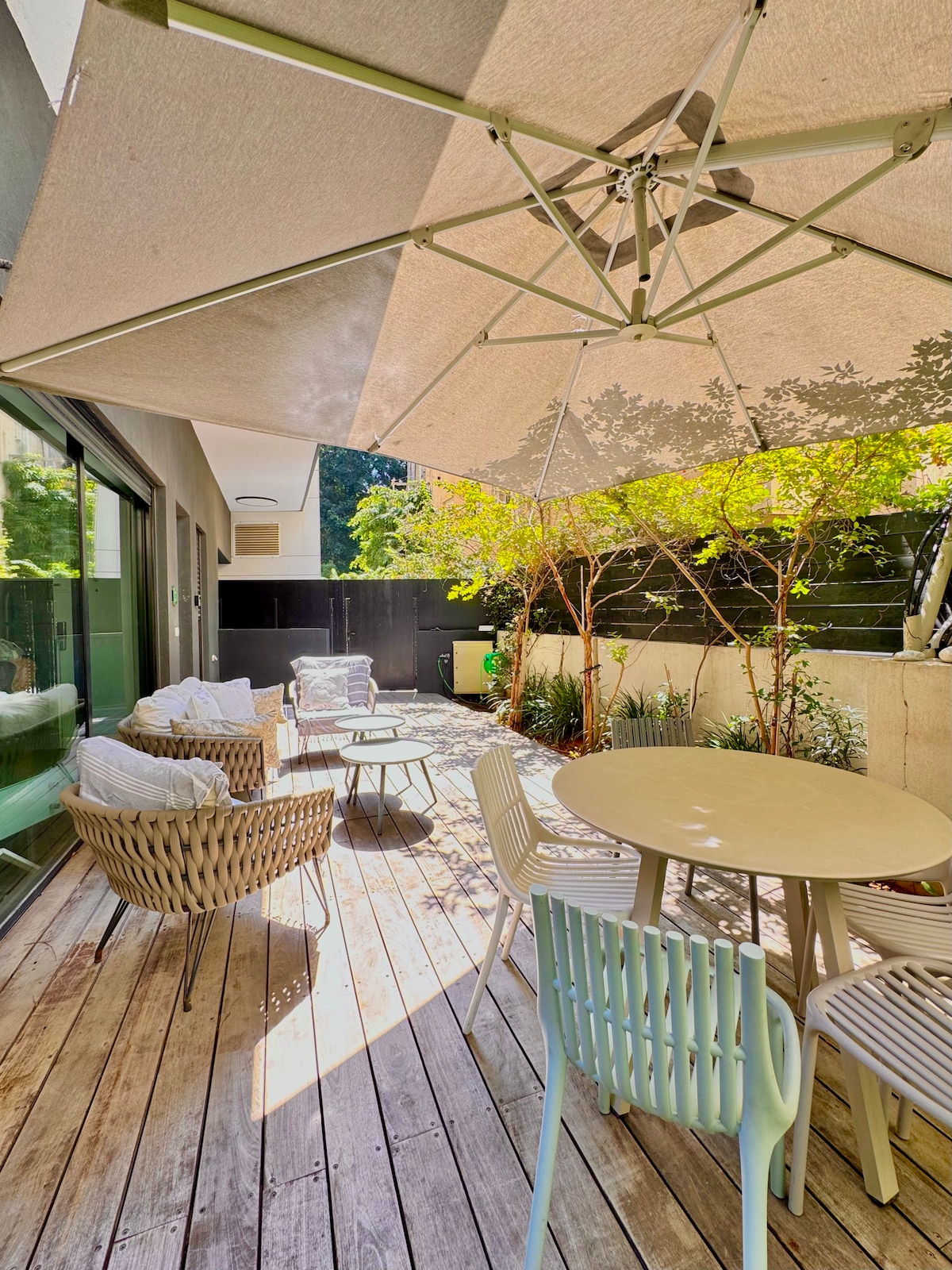 Ubicado en el animado barrio de Shuk Karmel, nuestro santuario de un dormitorio y espacio de trabajo ofrece un refugio tranquilo para parejas que buscan una escapada acogedora. Relájate en los espacios habitables decorados con buen gusto, cuidadosamente diseñados para evocar una sensación de serenidad y comodidad. Sal a nuestra zona exterior privada y disfruta de una taza de café en medio de la exuberante vegetación. A medida que se pone el sol, bebe una copa de vino bajo las estrellas y disfruta de momentos de pura relajación. Te damos la bienvenida a tu hogar lejos de casa.