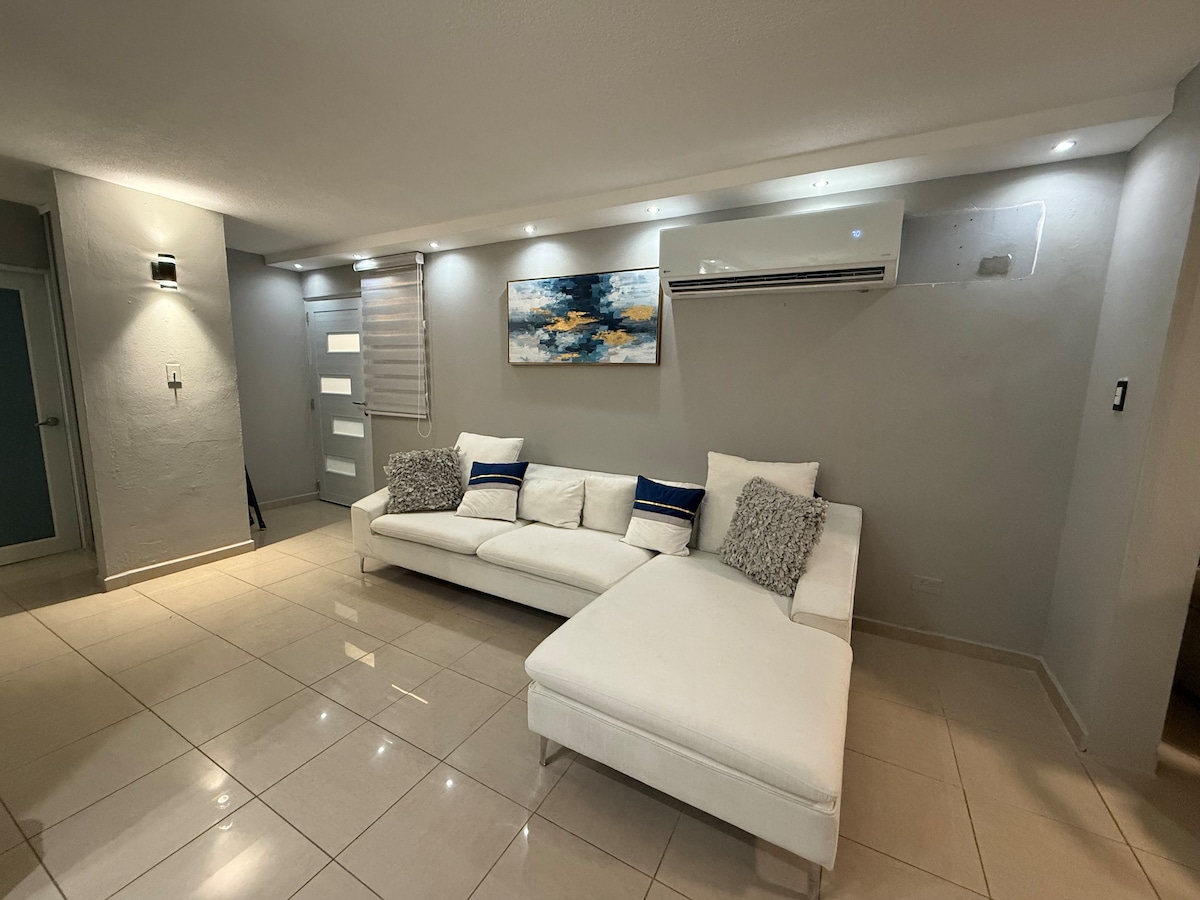 Cozy, nuestro mayor atractivo es la ubicación, equipado para la comodidad de 4 huéspedes. Cuenta con 2estacionamientos justo frente a la puerta, 3 unidades A/C, 3 smartTv 2camas muy cómodas tamaño queen , WiFi , agua caliente, patio exterior. A 5 minutos de playa Punta Salinas, walking distance to AtM & mini market 24/7.Caminas a un lago puedes ejercitarce alrededor. Cerca en auto hay supermercado, panadería, farmacias vida nocturna adultshops. Cerca Carr#165 justo en la Carr#167 vía al expreso