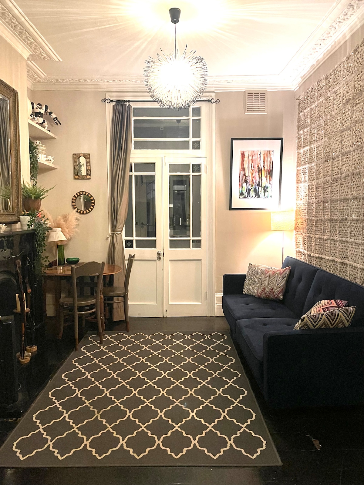 Mi luminoso y acogedor apartamento dúplex retro, situado en el límite de Blackheath, a pocos pasos de Greenwich Park y con excelentes conexiones de transporte en Lewisham, a solo 8 minutos en tren del Puente de Londres. En la planta baja hay una cocina, un aseo y un salón comedor. Arriba encontrarás 2 dormitorios y el baño principal. Como fotógrafo viajero, está decorado con muchas de las fotos que he tomado y las cosas que he encontrado en el camino, lámparas escondidas en cada rincón para que se sienta súper acogedor por las noches.