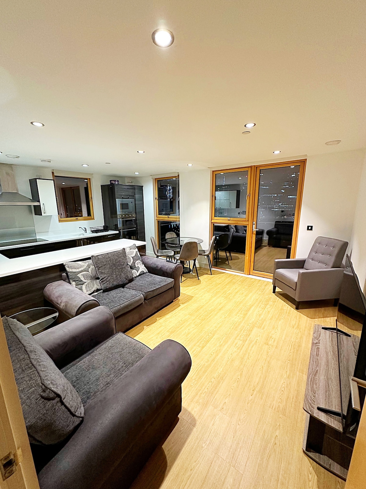 Este apartamento de alta calidad construido especialmente se encuentra en un moderno desarrollo adyacente a la estación DLR de Elverson Road con acceso directo a Canary Wharf en 16 minutos, con 1 parada a Excel; a 5 minutos a pie de la estación principal de Lewisham que ofrece acceso rápido a London Bridge, Waterloo, Victoria . Para cualquier persona que venga en coche hay estacionamiento GRATUITO junto a la propiedad que está en la planta baja. El piso tiene un dormitorio espacioso con cama tamaño king, ducha doble, cocina moderna totalmente equipada y salón con sofá cama.