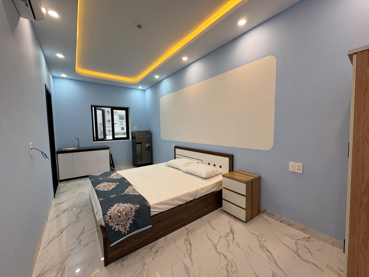 - Tiene una gran vista de 2 lados de la ciudad. - Cerca del centro de la ciudad (a unos 5-10 minutos en moto) y otros servicios públicos como supermercado, mercado local,... - Ve a la playa a unos 5 minutos a pie. - Muebles nuevos completos (cocina, lavadora, wifi morden...) - Buena seguridad con cámara y equipo de administración 24/7. - Espacio de trabajo conjunto gratuito con una bonita arquitectura y aire acondicionado. - Espacio de unos 30 metros cuadrados.