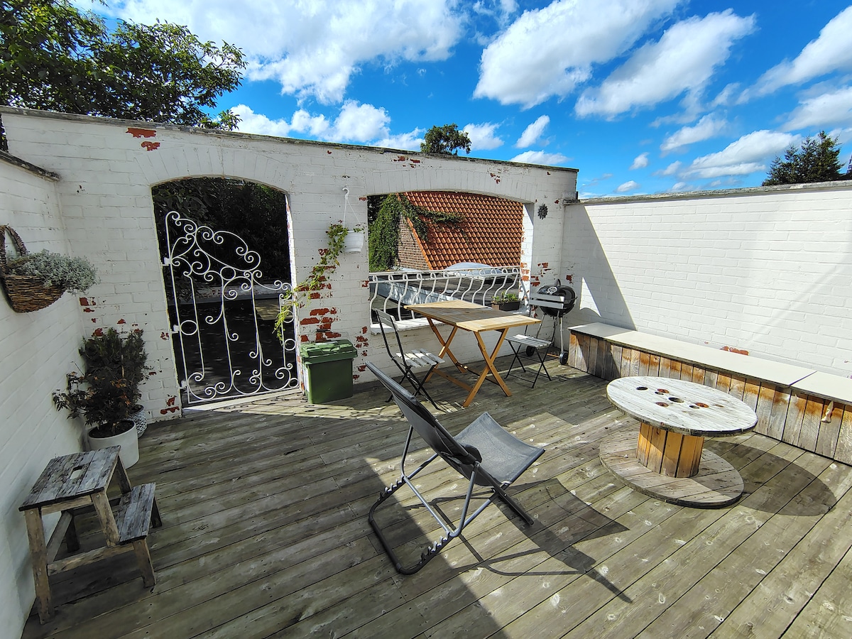 Oasis de tranquilidad para excursionistas, ciclistas y amantes de la naturaleza, donde las mascotas son más que bienvenidas (un poco difícil para perros más grandes, hay escaleras que subir). Situado a lo largo de la ruta ciclista 70, en plena naturaleza y, sin embargo, cerca de las ciudades históricas de Gante, Brujas, Courtrai y Amberes. ¡Disfruta del aire fresco del campo! En nuestra calle se pueden oír gallinas cacarear, burros rebuznar e incluso hay ovejas, vacas y solo gente amable.