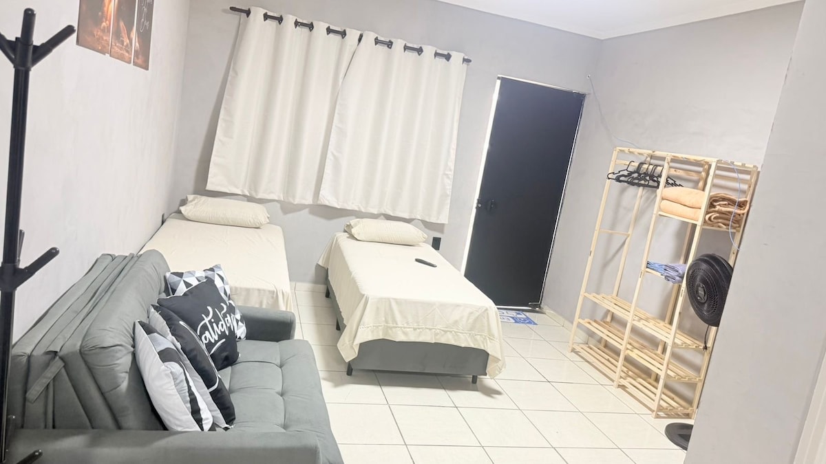 ¡Quédate en nuestro Economy Supermarket Luxury Kitnet! 1 dormitorio amplio y aireado con una cama individual, un baño doble y un sofá cama. ¡Apartamento tipo estudio muy acogedor y tranquilo, en el segundo piso del mercado con hermosas vistas de la ciudad! ¡Ubicación cerca del centro de Limeira-SP y puntos estratégicos de la ciudad! Faculdades Einstein e Unip, Rod. Anhanguera, centros comerciales, supermercados y farmacias, ¡a 7 minutos de la Av. das Jóias (Costa e Silva)!