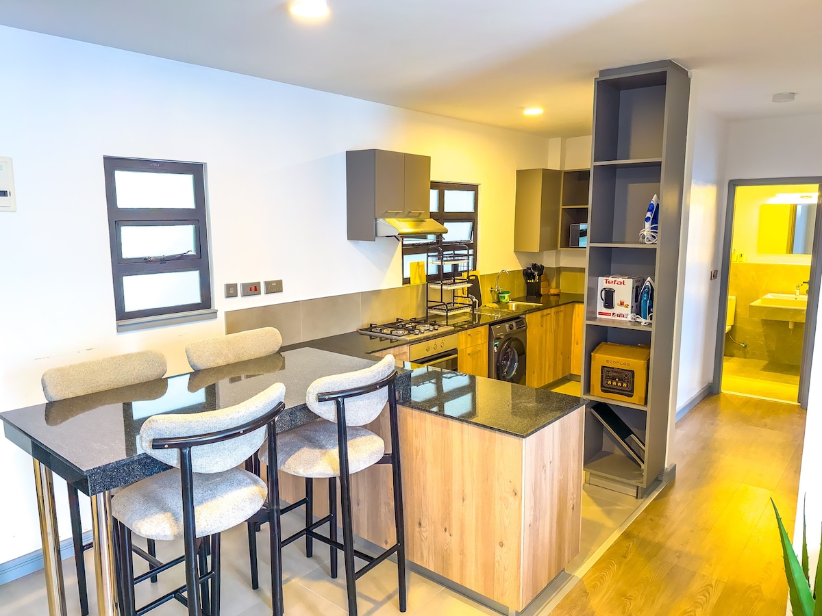 Elegante apartamento de 2 dormitorios en Kibichiku con Wi-Fi rápido, Netflix, estacionamiento y fácil acceso a Westlands/UN-Gigiri. Bienvenido a tu refugio urbano en Kibichiku, a poca distancia en auto de Westlands y el CBD. Este moderno departamento de 2 dormitorios ofrece comodidad, estilo y conveniencia todo en uno. Te despertarás con luz natural, cocinarás en una cocina totalmente equipada, te relajarás en la sala de estar con Netflix y dormirás tranquilamente en sábanas premium.