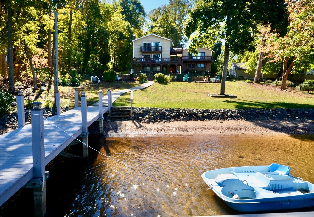 Moderna casa del lago de mediados de siglo de 1960, reformada con cariño, con vistas absolutamente impresionantes al canal principal y aguas de 15 pies de profundidad junto al muelle privado privado. Disfruta de más de 4000 pies cuadrados de vida frente al lago con familiares y amigos en una hermosa propiedad cerrada. Toneladas de espacio al aire libre con cubiertas de varios niveles y un comedor al aire libre y zona de parrilla. A solo 35 minutos del Aeropuerto Internacional de Charlotte-Douglas. Atracadero para barcos en la propiedad, además de fácil acceso a un embarcadero público o alquiler de barcos cerca.