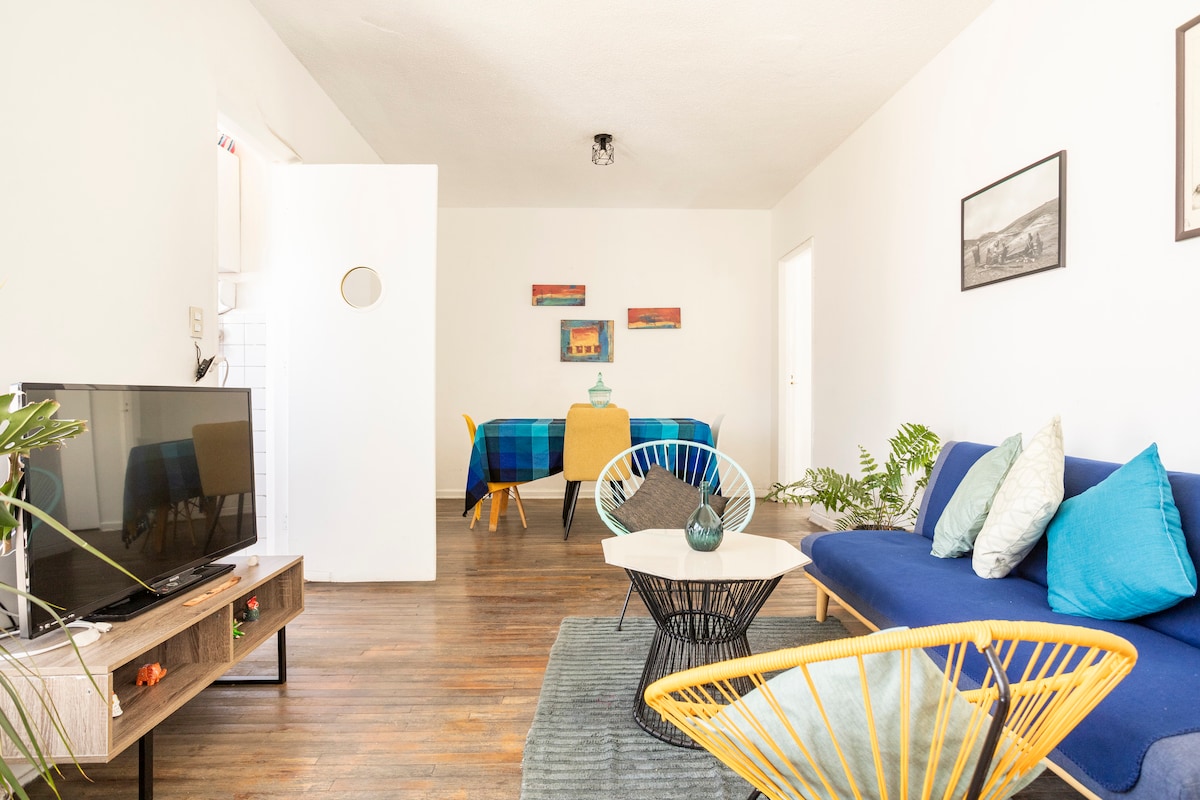 ¡Bienvenidos a Coyoacán! Estupendo loft de 120 m2 ubicado a tan solo 5 minutos caminando del Centro de Coyoacán. Vive la experiencia de este tranquilo e iluminado espacio abierto, ideal para descansar o trabajar y decorado con objetos llenos de historias. El loft se encuentra en el tercer piso de Casa Mavi, una antigua fábrica que fue remodelada para crear un lugar lleno de encanto que lo hace único. Cuenta con terrazas de uso común. Con opción para un tercer huésped. Wifi 200 megas.