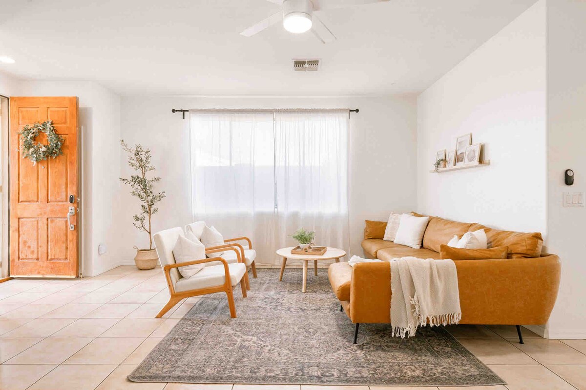 ¡Alojamiento entero para ti! Acogedora casa de 3 dormitorios y 2 baños a solo 10 minutos de Westgate y del estadio de los Cardinals. Disfruta de todos los lujos con una cama tamaño king en el dormitorio principal con baño privado y 2 camas tamaño queen en sus propias habitaciones privadas. Hay aparcamiento gratuito en el sitio y wifi gratuito. Amplio salón comedor abierto con una cocina totalmente equipada. Nuestra pequeña casa ofrece la mezcla perfecta de belleza y paz dentro de la maravillosa ciudad de Litchfield Park y las lujosas comodidades del hogar.