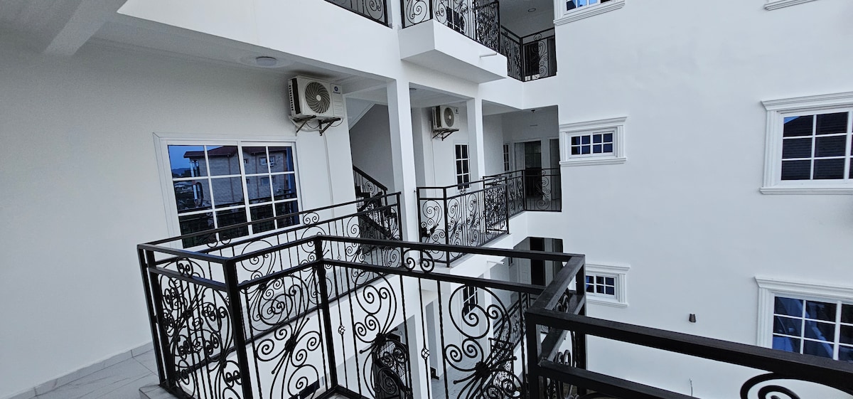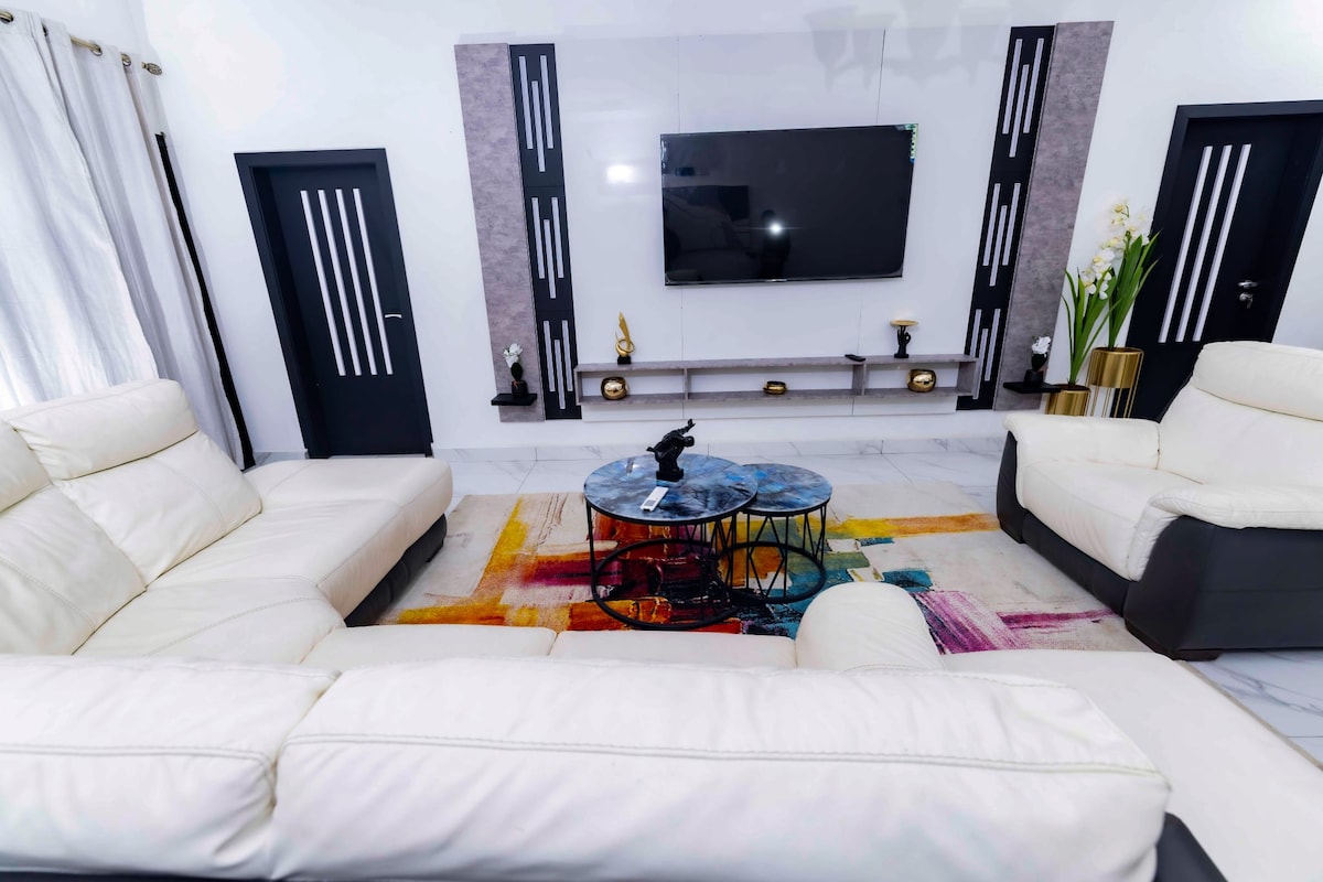 Welcome to the most affordable luxury Guest house in Buea. We are delighted to have you as our guest Our fully furnished apartments are located in MOLYKO on tarred MALINGO street beside LANDMARK UNIVERSITY ●2-BEDROOM APARTMENT: Spacious living room, 2Rooms, 2 toilets and kitchen ●AC ● ●55 inches Smart tvs and Bluetooth Home-theater systems ●24/7 Security surveillance ●Parking ●24/7 Water supply *Electricity (Backup Generator incase of outage)