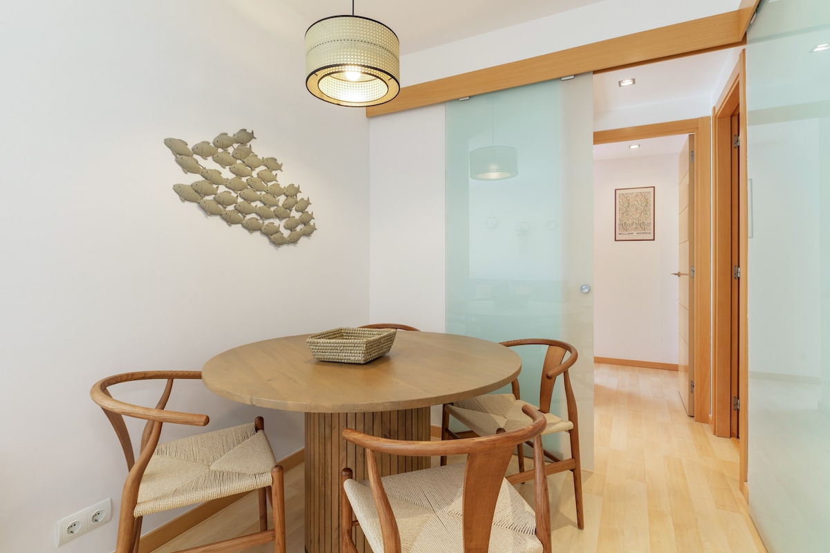 Elegante apartamento totalmente equipado en una zona tranquila, propiedad de una pareja jubilada y administrado con cariño por su hijo para garantizarles una jubilación tranquila. Rodeado de acogedores cafés y bistros, con un gran centro comercial a solo dos manzanas. A poca distancia a pie de Platja del Litoral, una de las playas mejor valoradas de Barcelona. Bien conectado por metro, tranvía, tren y autobús. A 20 minutos del centro de la ciudad, menos de la Sagrada Familia. Cerca de los principales lugares de interés y a 45 minutos del aeropuerto de El Prat en transporte público.
