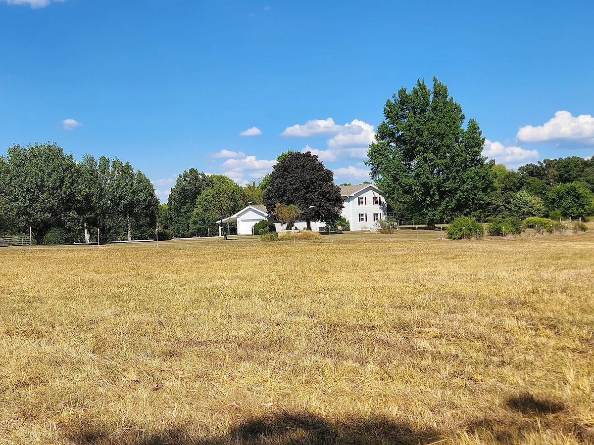 Casa de campo de 120 años de antigüedad recién remodelada y rancho ganadero en 125 acres de campos y bosques de Ozark, junto a la histórica autopista Ruta 66. Damos la bienvenida tanto a quienes pueden quedarse solo una noche como a quienes quieren quedarse más tiempo. ¡Camina por nuestro bosque, observa la vida silvestre, disfruta de una fogata o simplemente siéntate en el porche y relájate! Tenemos un granero de actividades con todo tipo de equipo/juguetes para exteriores. La casa tiene una cocina totalmente equipada y estamos cerca de la ciudad histórica de Cartago, donde hay varios restaurantes excelentes.