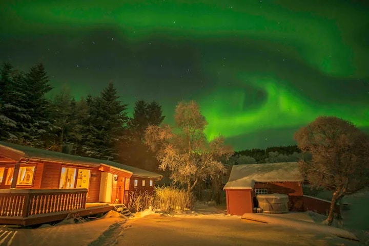 Disfruta del encantador entorno de este lugar romántico con una vista increíble. Duerme bajo el cielo, pero dentro, bajo un gran edredón noruego cálido y experimenta la naturaleza y el clima cambiante. - Contando las estrellas, ¡Escuchando el viento y la lluvia o viendo la mágica luz del norte! ¡Esta será una noche inolvidable! Puedes mejorar tu estadía para incluir: - Burbujas de bienvenida con algunos refrigerios. - Cena servida en la cúpula o en el restaurante. - Desayuno en la cama o en el restaurante. 1200 NOK
