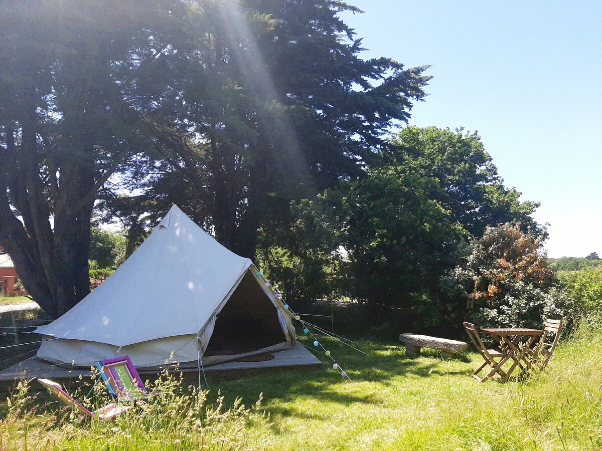 Disfrute del Canal de Nantes en Brest en el camping Saint Clair en un hermoso parque arbolado de 5 hectáreas. Ofrecemos un bungalow de lona para un máximo de 5 personas: * 1 dormitorio cama doble * 1 dormitorio de tres camas individuales de las cuales 2 literas En verano, acceso gratuito a la piscina de martes a domingo incluido