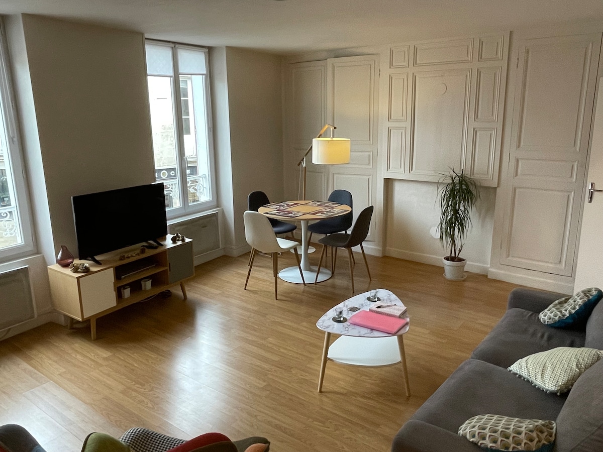 T2 50 m2, totalmente equipado, balcón, estacionamiento cubierto en una residencia segura, 5 min a pie de la estación de tren, 10/15 min a pie del castillo real de Blois, casa de la magia , centro de la ciudad, Chambord a 15 km. Zoo Beauval a 45 minutos. Todos los comercios a 5 metros a pie. Salida desde la estación de tren (a 5 m): autobús hacia Chambord-- Zoo Ruta de los vinos del Loira (Saumur, Cheverny, Bourgueil, Touraine) alquiler de bicicletas cerca. La lavadora y la secadora no están disponibles para estancias cortas.