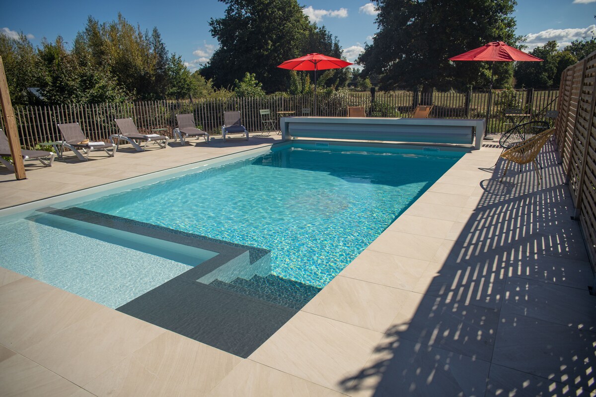 El entorno natural de La Bergerie gite ofrece impresionantes vistas al castillo vecino y a la campiña circundante. Nuestro lujoso retiro con piscina es ideal para aquellos que buscan calma y relajación. La granja también tiene varias áreas donde puedes caminar, leer, pintar, escribir e incluso hablar con los animales. A poca distancia en coche o en bicicleta de la casa de campo encontrarás encantadores pueblos, monumentos históricos, ríos, viñedos, ciudades medievales y una amplia gama de actividades. Haz todo lo que quieras.