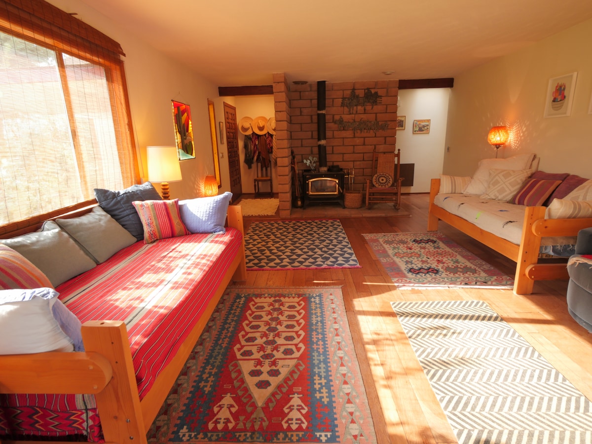 - Cerca de Main St y restaurantes (10 minutos a pie), Whitney Portal (30 minutos en coche), Death Valley (1 hora y 15 minutos en coche), Alabama Hills (10 minutos en coche). - Vistas a la montaña de Whitney, Lone Pine Peak, Williamson y las montañas Inyo. - Mini divisiones en todas las habitaciones y una estufa de pellets para las noches frescas. - 2 camas tamaño queen y un futón en la sala de estar. Se proporcionan almohadas y mantas adicionales. - La cocina incluye platos, ollas, sartenes, aceite de cocina y otros utensilios para todas tus necesidades de cocina y horneado.
