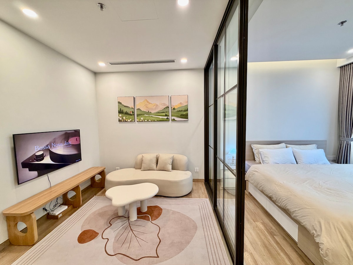 Un apartamento de estilo japonés de alta gama con 1 dormitorio, 1 baño, una ducha separada y accesorios inteligentes Toto, ubicado en Landmark 2 – Swanlake Onsen, una zona céntrica privilegiada de Ecopark. El departamento ofrece vistas panorámicas del parque Swan Lake, villas en la isla y un impresionante paisaje nocturno, con fácil acceso a un manantial japonés Onsen, un campo de golf, la Academia EPGA, una calle gastronómica, un supermercado, restaurantes, cafeterías, un gimnasio, un spa, una piscina al aire libre durante las cuatro estaciones, jardines paisajísticos y un estanque japonés Koi.