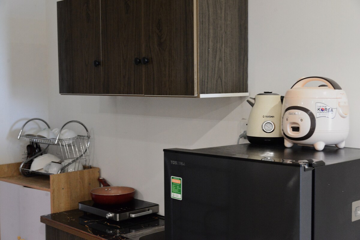 🛋️El interior está delicadamente diseñado, el tono blanco + negro principal pero extremadamente lujoso, los puntos frescos agregan una luz suave por la mañana para ayudar a que el aire se enfríe y se caliente 📺 Hay electrodomésticos de cocina completos en la habitación para cocinar, utensilios de estar, lavadora, aire acondicionado, caldera y la televisión están conectados a la red de Netflix disponible. Abajo del vestíbulo hay comida para reyes y una tienda conveniente, cafetería... y un montón de otros servicios públicos