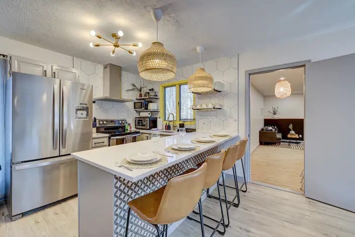 Situada a orillas del lago Arrowhead, esta nueva casa construida a medida ofrece una escapada única y lujosa para aquellos que buscan una estancia con todo lo que ofrece la vida frente al lago. Perfectamente preparada para una escapada romántica para dos, The Lakehouse on Arrowhead fue creada para proporcionar un espacio para que las parejas descansen y se reconecten mientras disfrutan de las hermosas vistas del lago desde dentro y fuera. La espaciosa terraza está a solo unos pasos de tu propio muelle privado, lo que te permite hacer kayak cuando quieras.