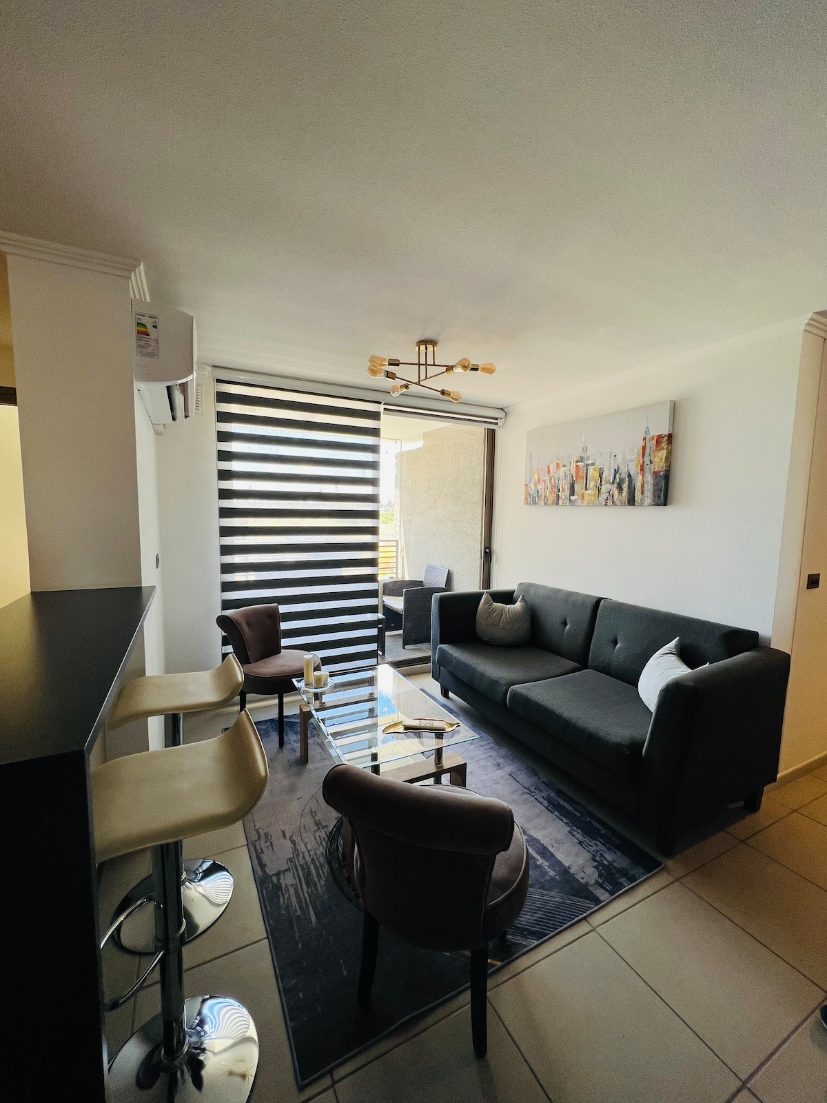Encantador departamento con sala de estar equipada, una terraza increíble y un cómodo y acogedor dormitorio (cama king) con baño en suite, diseñado para ofrecerte una experiencia única. En este espacio también contarás con acceso exclusivo a una hermosa laguna. A solo 5 minutos de supermercado, strip center y terminal, tendrás todo lo que necesitas a tu alcance. Lo que te ofrecemos: 🚗 Estacionamiento privado 🔑 Conserjería 24/7 🛜 Wifi de alta velocidad 🏞️ Acceso directo a la laguna
