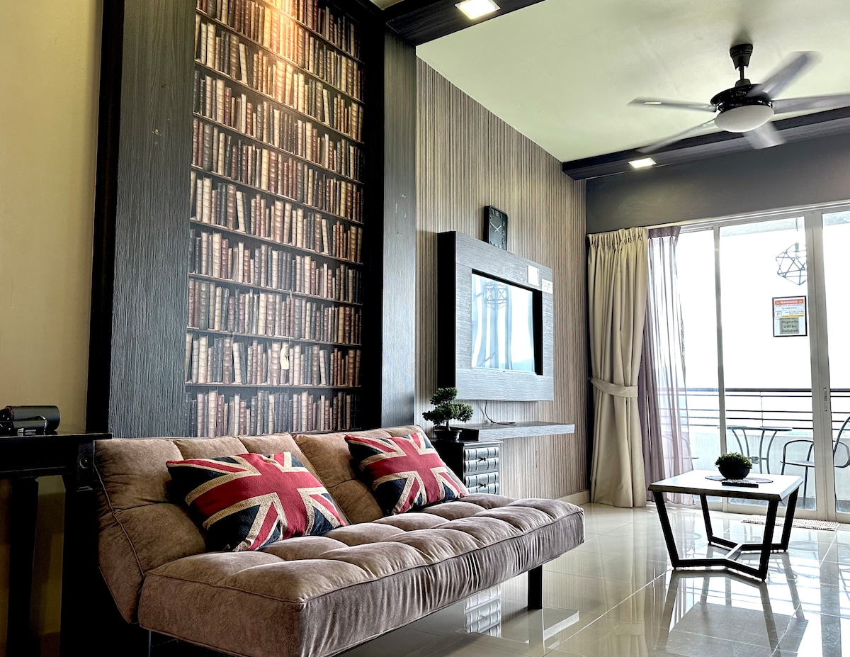 Esta casa de familia cuenta con Onsen (bomba de agua de la cercana fuente termal) y tiene vistas al parque temático y a las colinas de piedra caliza verdosas circundantes. A poca distancia a pie, el Lost World of Tambun es un galardonado parque temático con fuentes termales naturales. La unidad está decorada con buen gusto y equipada con colchón de primera calidad (Napure Alemania), dispensador de agua Coway, TV inteligente de 55 pulgadas (Netflix) y aire acondicionado. Las instalaciones incluyen piscina onsen, piscina infinita, gimnasio, etc.