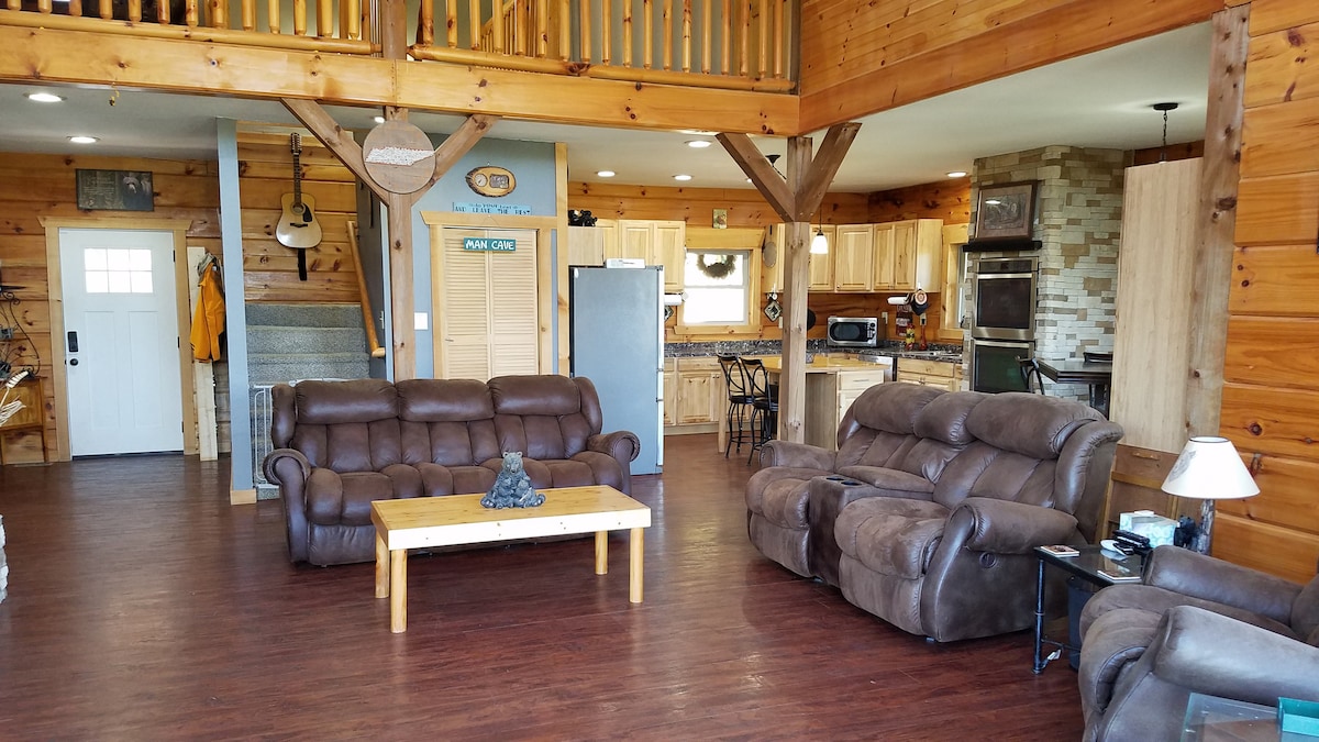 Olvídate de tus preocupaciones en este espacio espacioso y sereno. Esta gran cabaña se encuentra en medio del bosque junto a Kingston Highway, a 10 minutos en auto de Lenoir City y a 15 minutos en auto de Kingston. La cabaña tiene tres dormitorios, una cocina bien equipada, Internet de fibra de 1 Gbps, dos televisores inteligentes, estacionamiento sustancial para vehículos más grandes con remolques, un agradable jardín trasero, una sala de juegos con una mesa de billar, juegos de mesa, lavadora/secadora, enchufe exterior de 240V 50A para carga de RV/EV, etc.