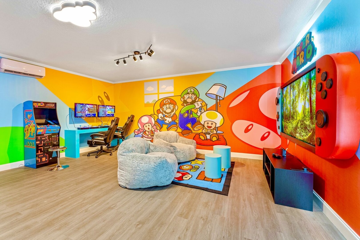¿No puedes reservar esta casa? ¡No te preocupes! Revisa mi perfil en busca de alojamientos similares que puedan adaptarse a tus necesidades. ¡TENEMOS SERVICIO DE ATENCIÓN AL CLIENTE 24 HORAS, 7 DÍAS DE LA ¡Disney a solo 10 millas de distancia! Amplia casa temática unifamiliar (2168 pies cuadrados) con una cocina totalmente equipada. Ven y diviértete con los niños en una sala de juegos privada o relájate mientras tienes una barbacoa con tu familia junto a tu piscina privada y spa. Hay un patio trasero grande y vallado que ofrece mucha privacidad y espacio. ¡Disfruta de las vacaciones de tu vida!