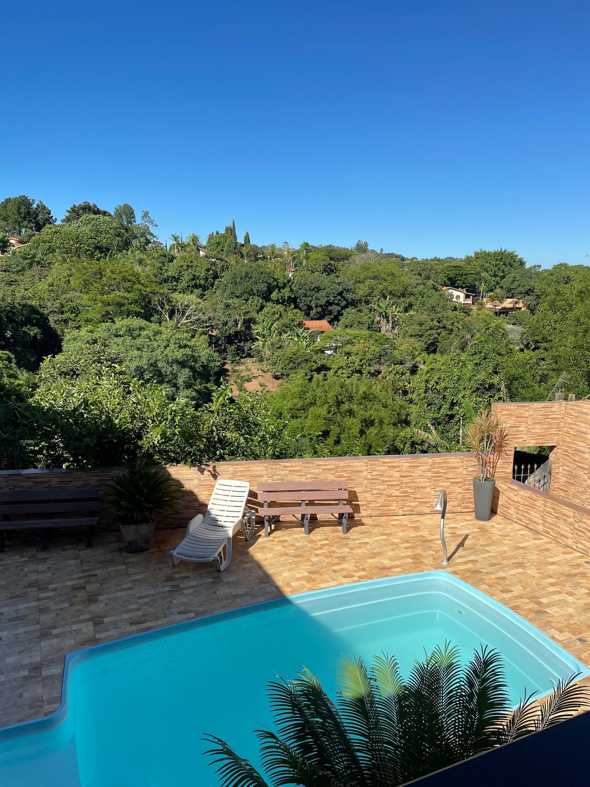 Casa de una sola planta a una hora de São Paulo, 3 suites en la casa principal y en el anexo; dos dormitorios con aire acondicionado, un baño y una sala de estar; terraza con horno de pizza, barbacoa y piscina. En la sala de TV, chimenea, muy cómoda. Lavabo. Cocina abierta para barbacoa y horno de pizza. Todos los utensilios necesarios para que tu estancia sea lo más cómoda posible. Un enorme jardín con mucha vegetación alrededor de la casa. Estamos a 6 km de Fazenda Santa Bárbara. PAQUETE DE AÑO NUEVO MÍNIMO 4 DÍAS