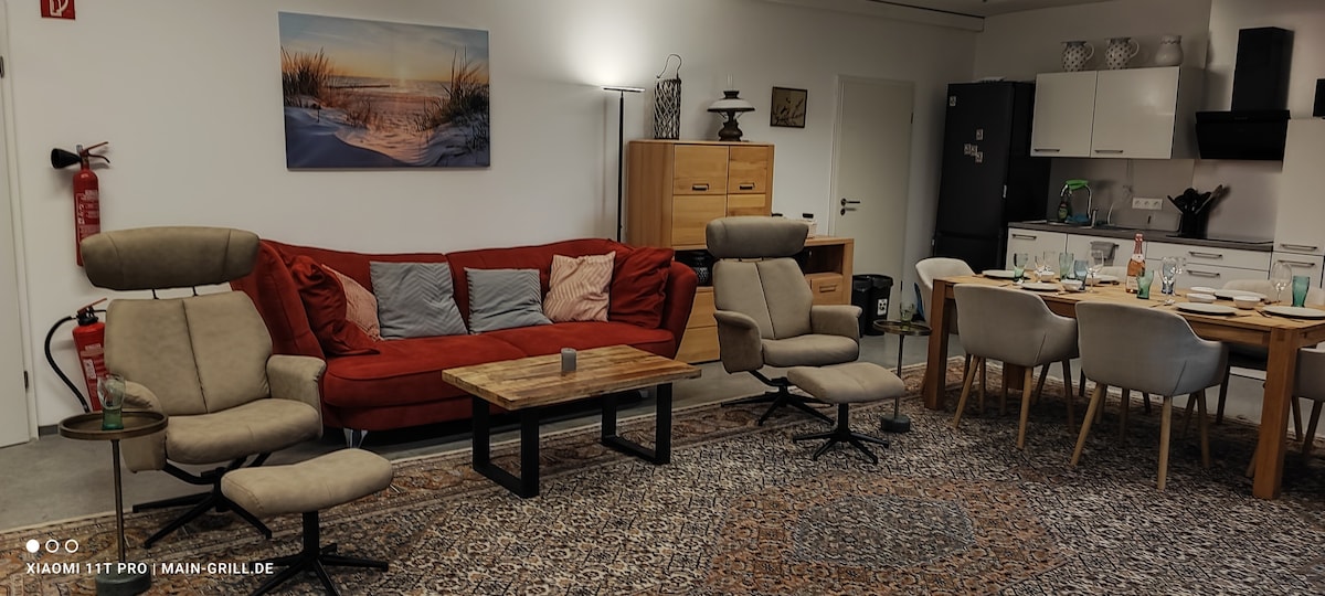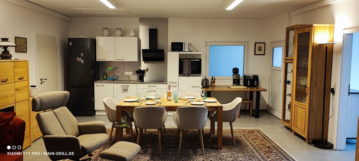 Relájate y desconecta en este alojamiento tranquilo y elegante. Hay mucho espacio para un máximo de 4 personas, zonas para relajarse, cocinar o trabajar. Puedes utilizar la PlayStation o el escritorio eléctrico para sentarte/ponerte de pie para actividades de oficina en casa. El loft no está lejos de Aschaffenburg, Frankfurt, Wertheim Village o Wuerzburg. Se puede llegar a todos en un máximo de 50 minutos o menos. Además, el bosque de Spessart comienza justo detrás del loft, se puede acceder a muchas oportunidades para caminar y andar en bicicleta desde Waldaschaff y desde el loft.