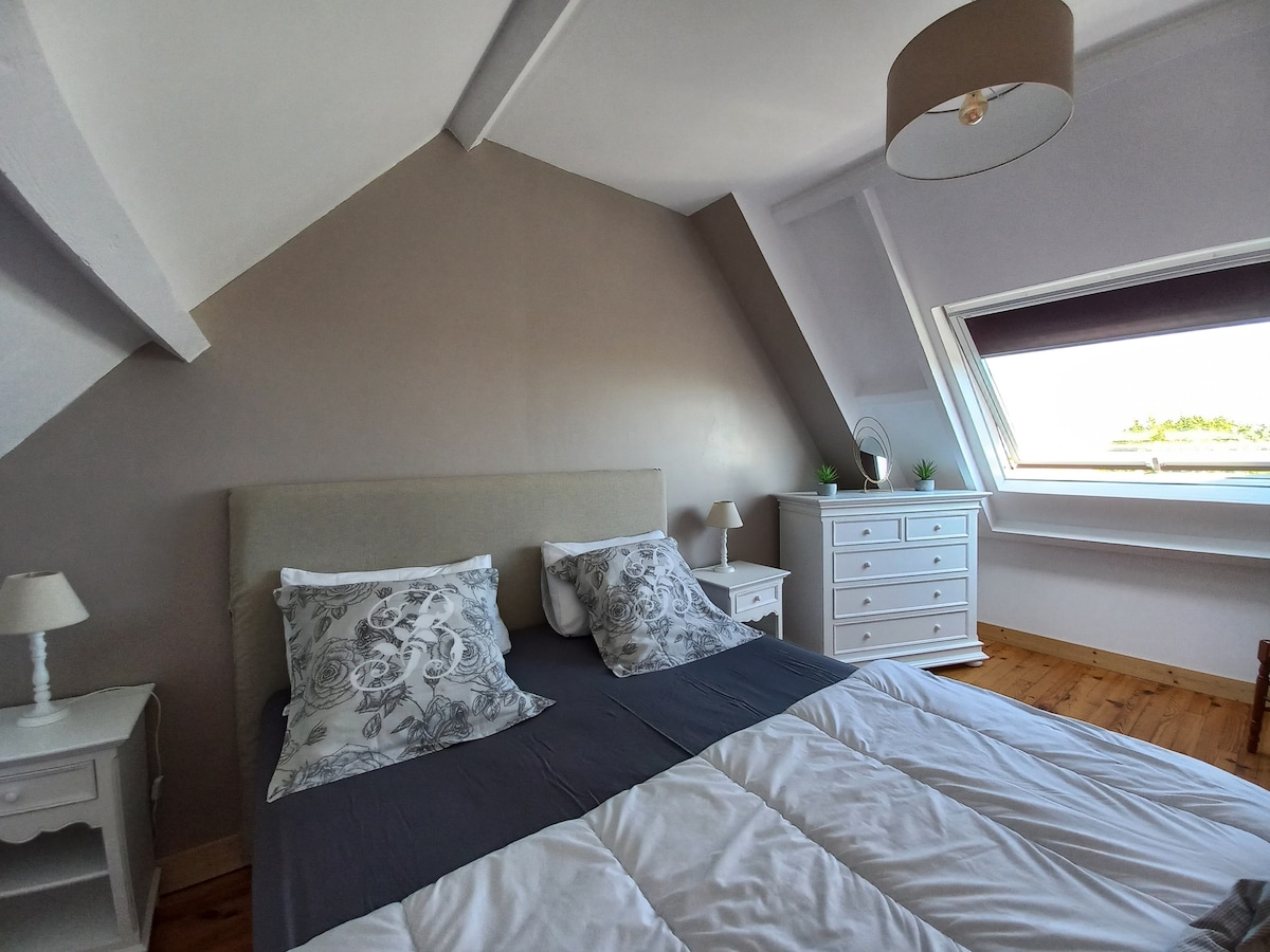 Dúplex en pleno campo, adosado a una antigua granja. Situado a 8 km del mar (Siouville-Hague) y de muchos paisajes por descubrir en los alrededores. Alojamiento totalmente equipado con una gran sala de estar en la planta baja, que consta de una zona de cocina equipada y una zona de estar con televisión TDT. En la segunda planta, un dormitorio con baño y aseo separados. Alojamiento equipado con Wifi pero muy poca red telefónica.