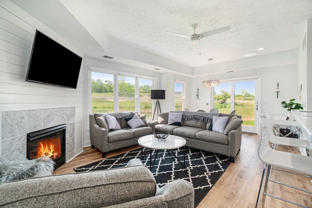Relájate en las serenas orillas del lago Laura con fachada privada frente al lago y más de 2000 pies cuadrados de elegante espacio habitable. Ya sea que estés lanzando una línea desde tu muelle privado, remando en los kayaks de cortesía o en un bote de remos para 4 personas, o alquilando nuestro barco de pesca por una pequeña tarifa, ¡esta es la vida en el lago en su mejor expresión! Disfruta de la barra de café de cortesía. Acceso a las comodidades de la casa club: piscina, jacuzzi, sauna, gimnasio, golf, piscina al aire libre, canchas de tenis y pickleball, cancha de voleibol, playas.