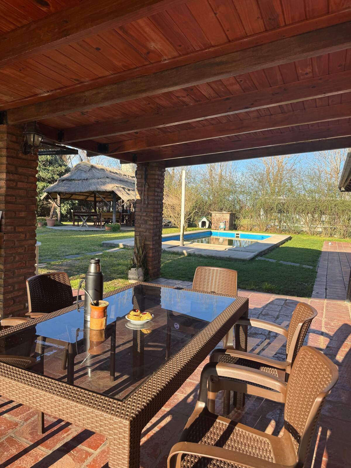 Su estadía será en una casa soñada, con un hermoso entorno, lleno de árboles frondosos, sonido de pájaros y aire puro. Se encuentra dentro de un barrio cerrado, con seguridad las 24hs. Si su objetivo es descansar y conectarse con la naturaleza, EMA Sweet Home Campo, es el lugar indicado. Podrán hacer caminatas, paseos en bicicleta, degustar típicos asados y pescados de río. Se ubica a metros de la barranca del imponente río Parana y a sólo 15 minutos de la bella ciudad de Rosario.