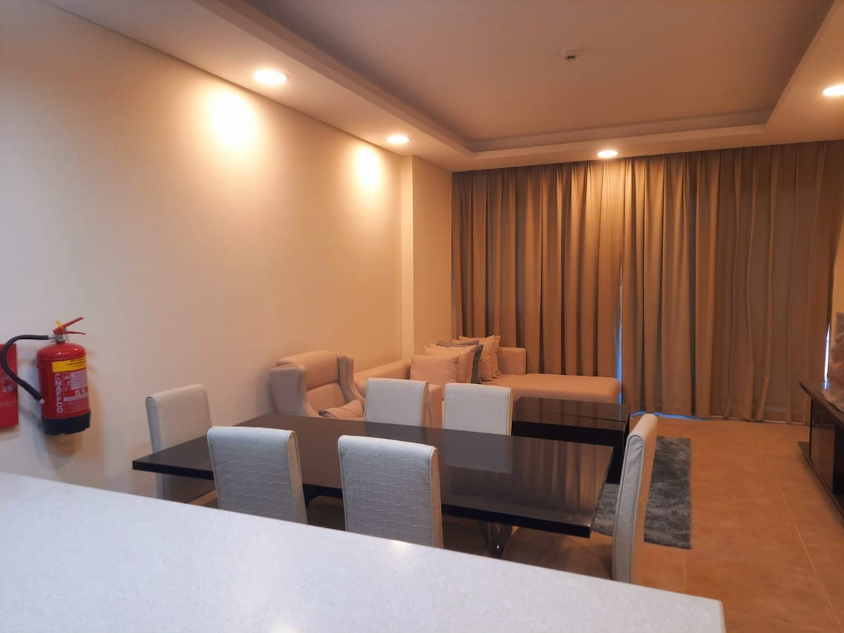 Bienvenido a tu lujosa estancia en Doha. • Ubicación privilegiada en The Pearl. • Luminosa y espaciosa sala de estar y comedor con balcón con vistas al horizonte de Doha. • Cocina abierta totalmente equipada con electrodomésticos. • Tres baños (dos con ducha). • Dos amplios dormitorios con camas tamaño king (4 camas + sofá + colchón). • Balcón amplio con barbacoa. • Cortinas opacas motorizadas. • Acceso al gimnasio, sala de juegos para niños, sauna de vapor y área social con mesa de billar, etc. • Acceso privado a la playa y la piscina.