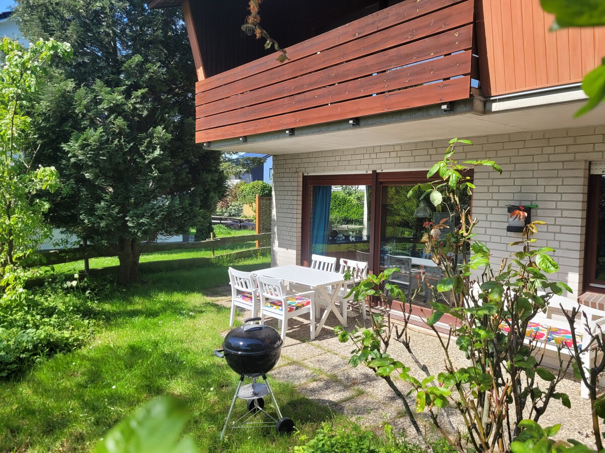 Die Wohnung befindet sich in einer Straßenendlage. Der große Garten lädt zum grillen und entspannen ein. Eine Sitzecke sowie Gartenliegen stehen unseren Gästen zur Verfügung. Für Kinder befindet sich im Garten eine Schaukel sowie Rutsche. Die nächsten Einkaufsmöglichkeiten befinden sich in Kappeln und Süderbrarup beides ca.6 km entfernt. Die Schlei (5km) und Ostsee (15 km) sind ebenfalls schnell zu erreichen. Die Umgebung bereitet viele Möglichkeiten für Unternehmungen für jung und alt.