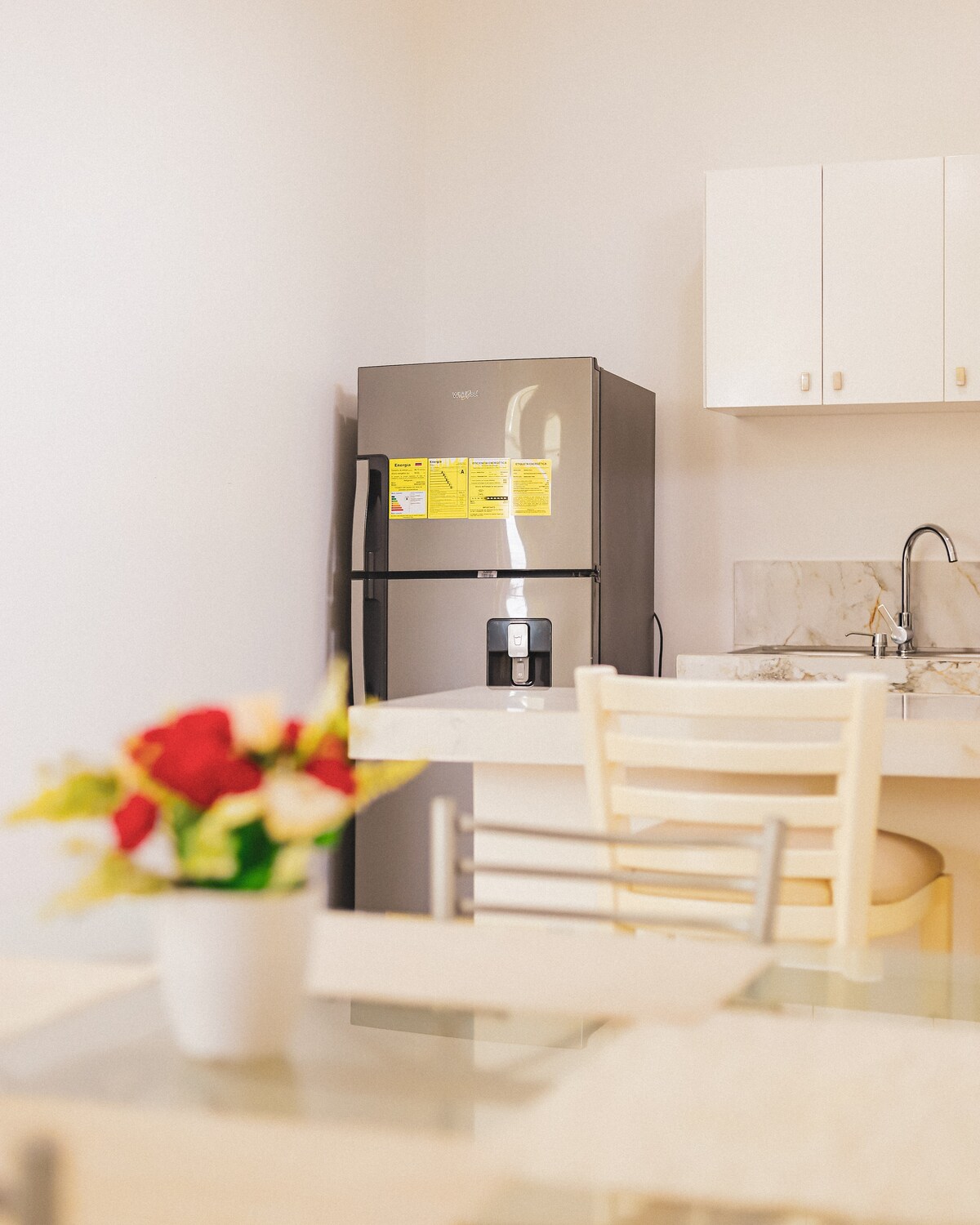 Área tranquila para descansar, amplia y cómoda cuenta con servicios de A/C, agua, TV, garage (opcional). Se encuentra distribuida en un dormitorio con baño, cocina, alacena y comedor. Totalmente amoblada.