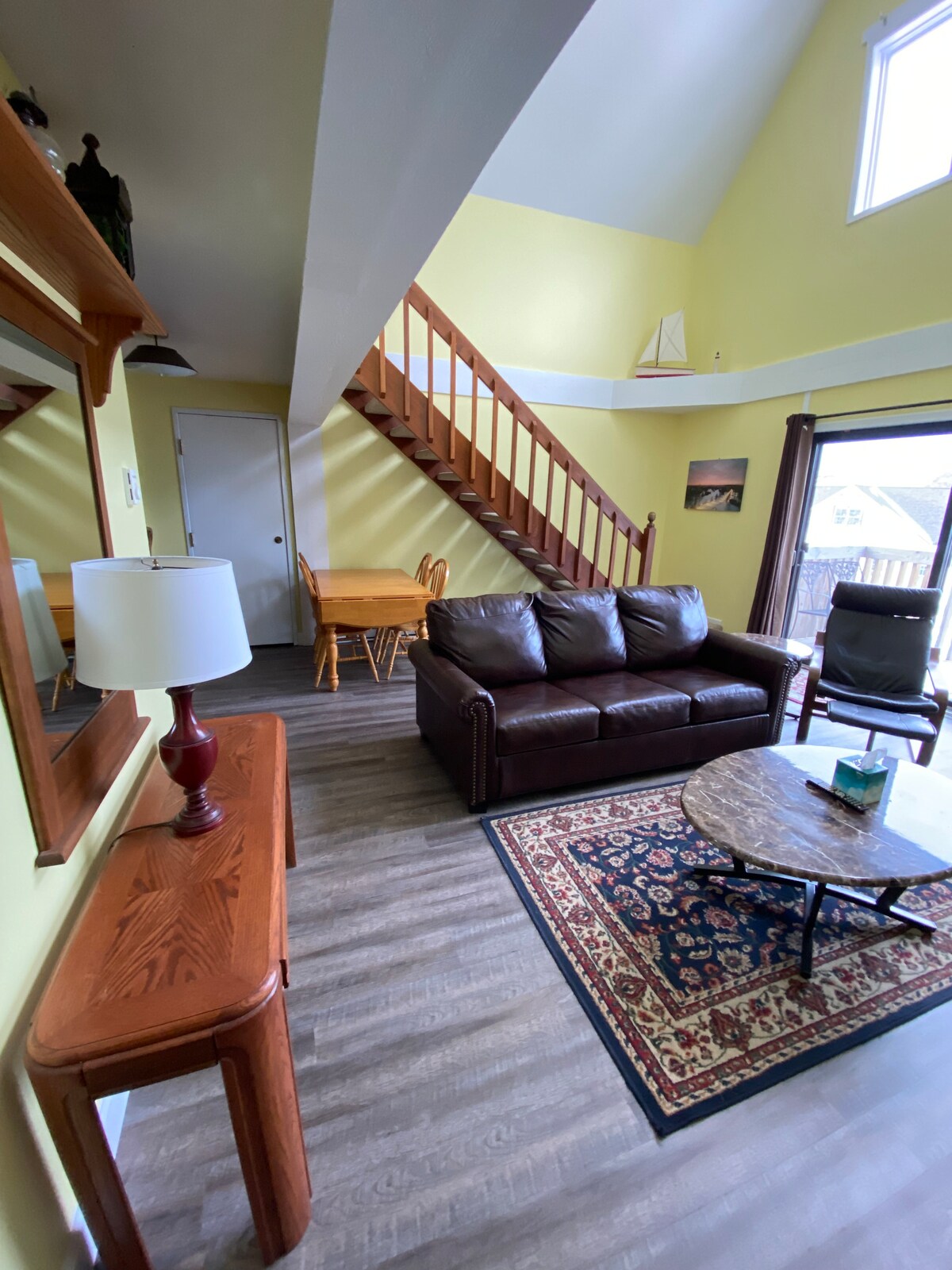 Ubicado a DOS MILLAS de la ciudad. 202 Applewood es un condominio de un dormitorio, unidad del segundo piso (sin ascensor) proporciona un hogar tranquilo lejos de casa. ¡NUEVOS PISOS Y LAVADORA/SECADORA! Cocina completa para cocinar tus propias comidas o caminar 2 minutos hasta el restaurante Woods. ¡La terraza privada ofrece vistas a las hermosas puestas de sol de Mackinac! El dormitorio estilo loft tiene una cama queen y un segundo baño. También hay un sofá cama para una opción de cama adicional. No se permiten mascotas. Alquiler de bicicletas disponible en el sitio.