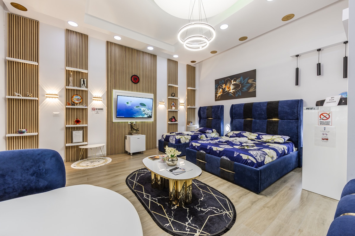 ¡Te damos la bienvenida a nuestro penthouse de lujo cerca del castillo de Kruja y el antiguo bazar! En el quinto piso (sin ascensor), tiene capacidad para 8 personas con 3 dormitorios, 2 sofás cama, cocina, wifi, aire acondicionado en la sala de estar y el dormitorio principal. Las otras dos habitaciones se mantienen frescas con las ventanas abiertas y mosquiteros, ¡a menudo mejor que el aire acondicionado! Disfruta de excelentes vistas, a pasos de tiendas, cafés y estacionamiento público gratuito. Incluye juegos de mesa como cartas y Jenga, perfectos para familias o grupos. ¡Tu base ideal para relajarte o explorar el corazón de Kruja!