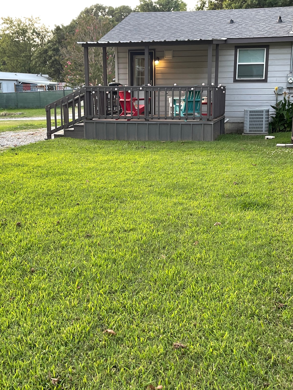 Kick back and relax in this calm, stylish space. Our 1 bedroom lofted cabin, sits in an oak forest beside a stocked pond.This tiny home has furnished ambient lit decks with a fire pit where You can escape the hustle and bustle of city life. This cabin is comfortably decorated with full amenities. We have 1 mile of wooded walking trails and wild life abounds. Minutes away from Alberta creek marina. Excellent fishing, boating and swimming. Five miles from the new west bay casino.
