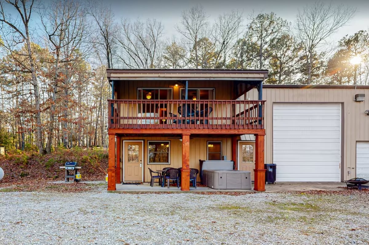 - Amplio refugio de 4,800 pies cuadrados con 31 acres de privacidad, terraza envolvente, jacuzzi y costa escénica. - El lujoso loft con litera ofrece una acogedora privacidad, perfecta para retiros en grupo o diversión familiar. - Amplio espacio habitable, cocina bien surtida con barra de café que garantiza relajación y facilidad. - Los senderos cercanos ofrecen senderismo, kayak y fácil acceso a las aventuras naturales de los alrededores. - Experimenta la serenidad y el lujo. Reserva tu estancia y relájate en esta escapada idílica junto al lago.
