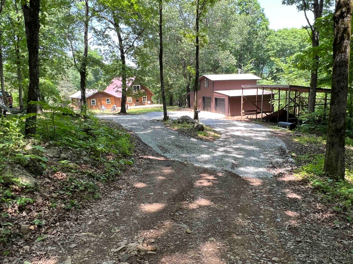 This beautiful cabin sits on twenty acres just off of Ozark National Forest "Pig Trial Scenic Byway". You and your guest will enjoy some very unique amenities during your stay. Bring your ATV"s and dirt bikes to enjoy exploring the OZARK NATIONAL FOREST, which you can access right from the cabin There is a Five acre lake on the property stocked full of fish. Bring your fishing gear. Catch/release on fishing. No life guard on duty.
